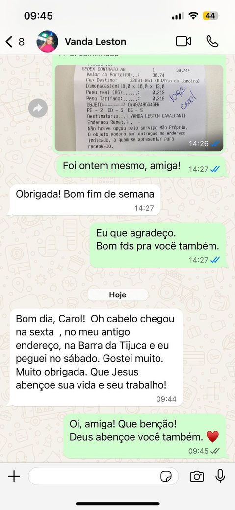 Da nossa sede até a sua casa o mega hair passa por um longo trajeto, o que pode fazer com que o seu cabelo chegue levemente espalhado.